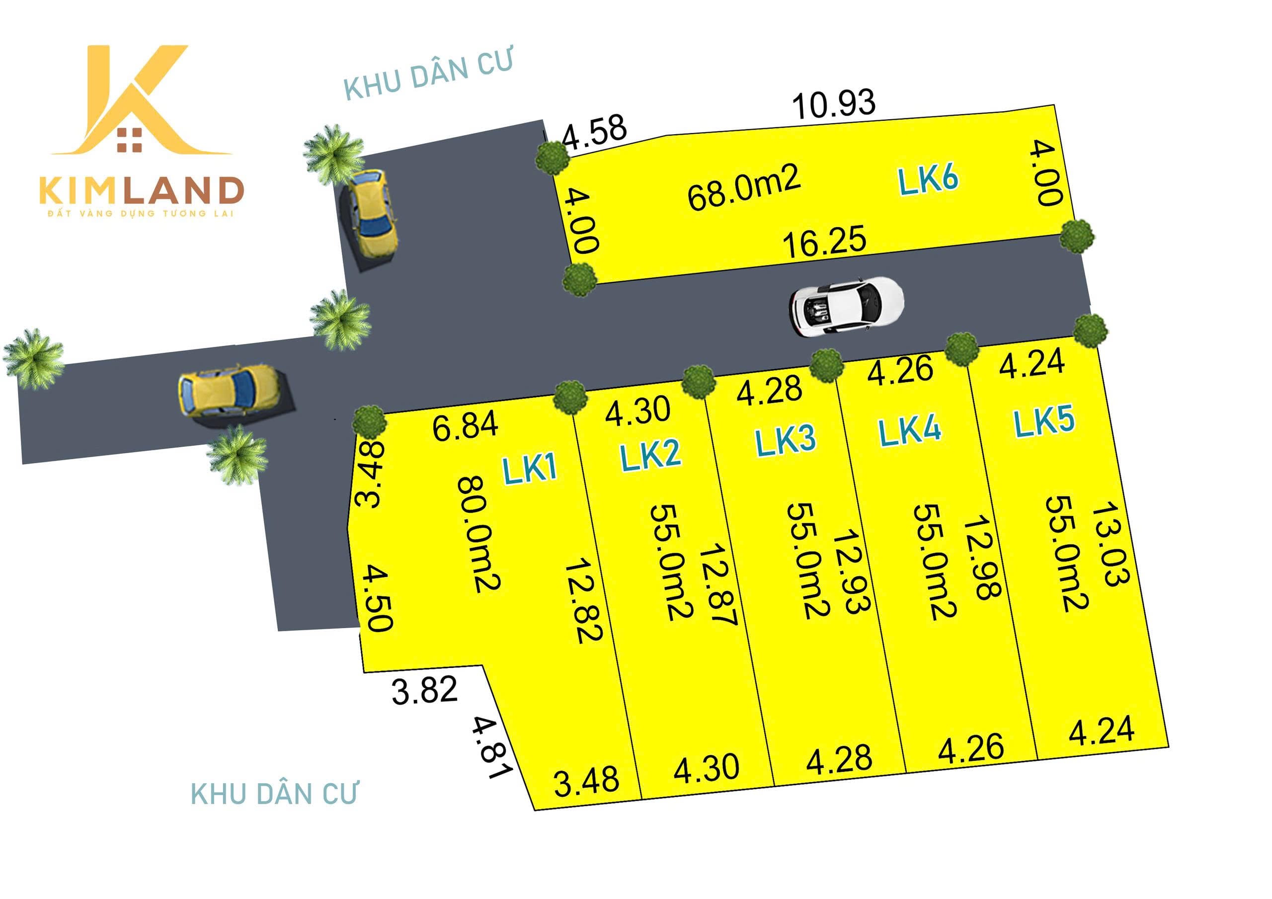 • Đất nền: gồm 6 lô, diện tích từ 55.0m2 – 80.0m2/lô.